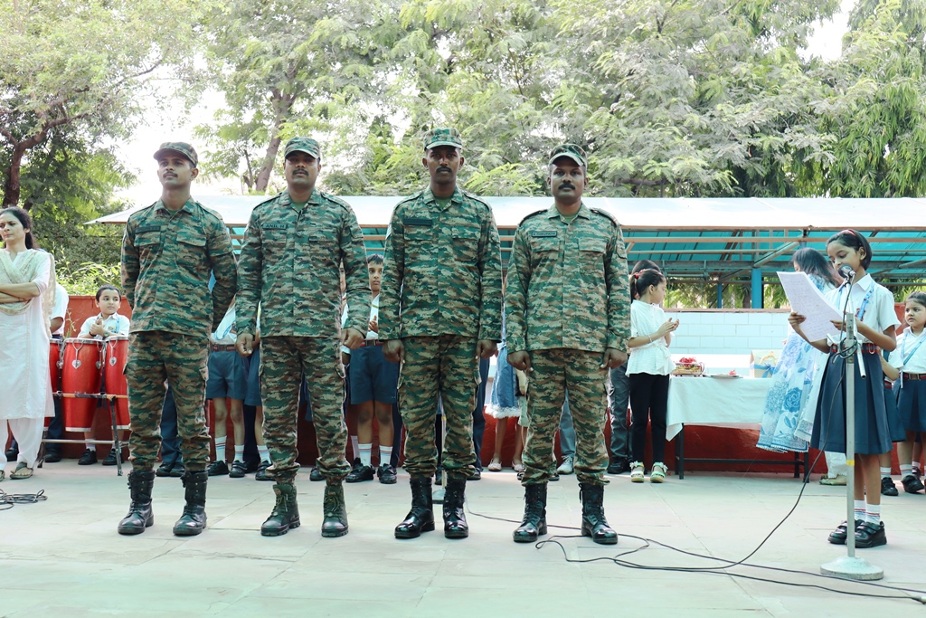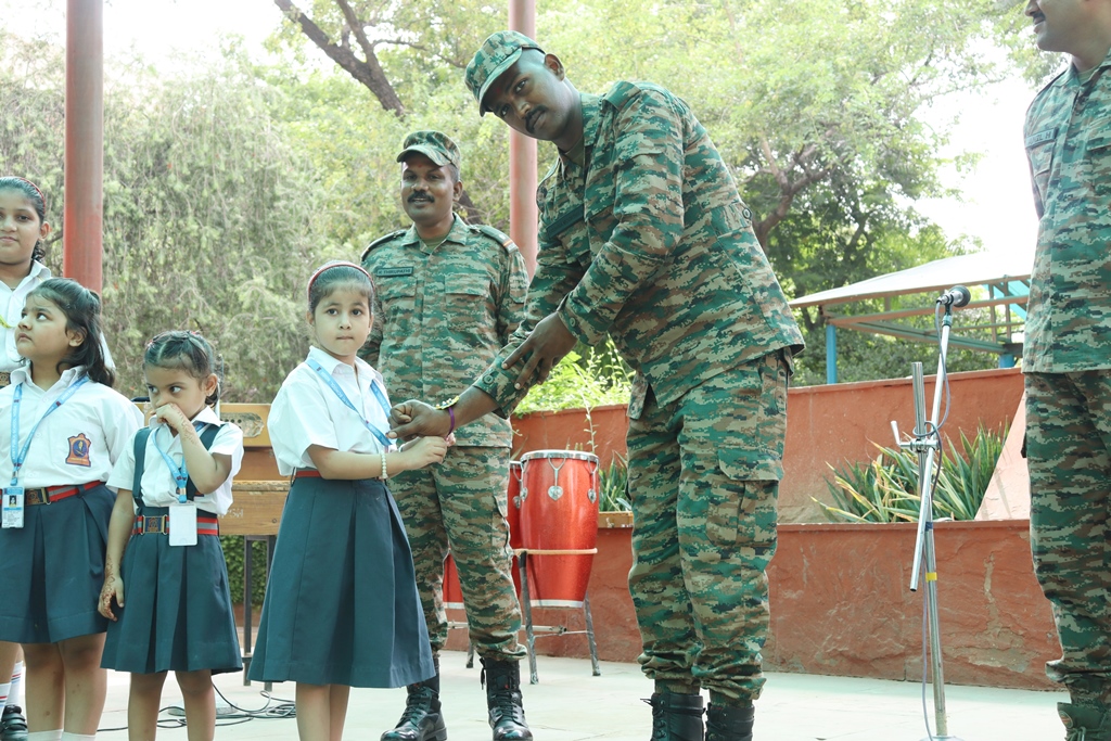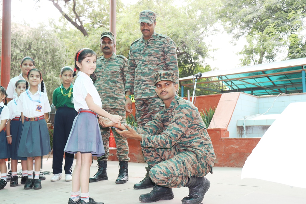 Army Public School, Noida celebrated Raksha Bandhan on 08 August 2025 with great zeal. Primary Wing students actively tied rakhis to four QRT members from 69 Med Regt, fostering patriotism and respect. They also crafted handmade rakhis, promoting creativity, joy, and bonding while highlighting the festival’s values of love, care, and mutual respect.