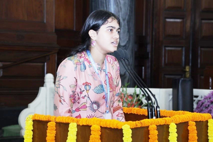 All participants were asked to prepare a three-minute speech on any one of the three national leaders – Mahatma Gandhi, Shri Lal Bahadur Shastri and Sardar Vallabhbhai Patel. After three rounds of screening, 12 participants were shortlisted to deliver speech at the main event. Anwesha Awasthi delivered a flawless speech on Sardar Vallabhbhai Patel in the Central Hall of the Samvidhan Sadan at Parliament.