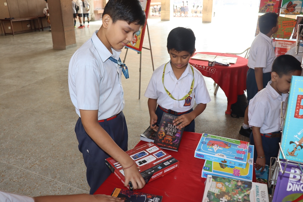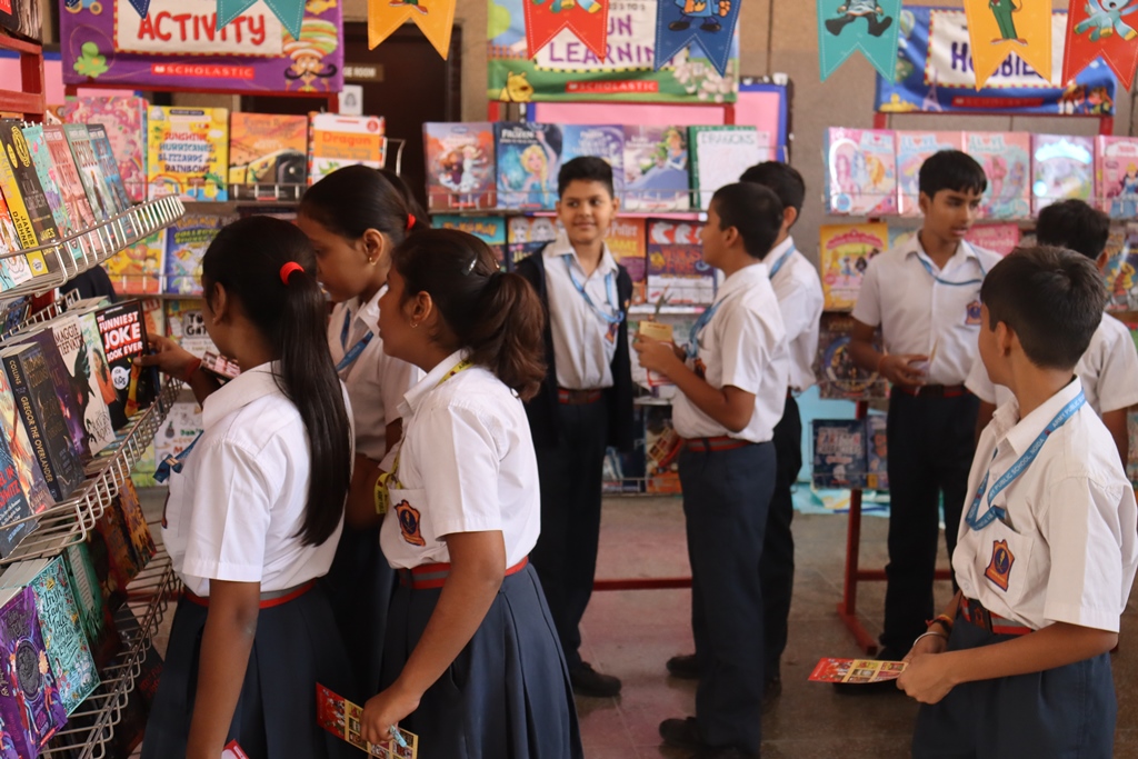 A Scholastic India Book Exhibition was held at APS Noida from 16–18 October 2025 and inaugurated by Principal Ms Indrani Neogi along with young readers from Class I. A wide collection of fiction, thrillers, encyclopedias, classics, and craft books was displayed. Students from all wings enthusiastically browsed and purchased books. The exhibition recorded sales of ₹45,222, with books worth ₹6,783 gifted to the school. The event successfully encouraged reading habits, imagination, and joyful engagement with literature.